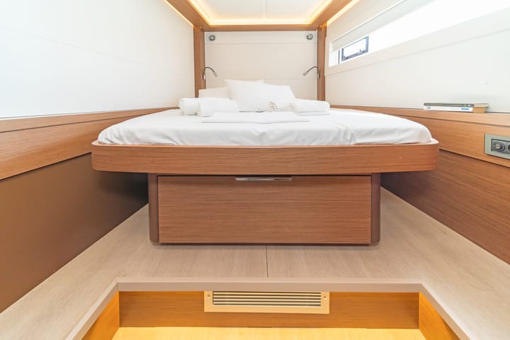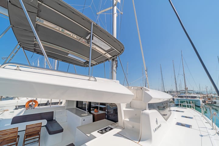 6-cabin Lagoon 46 catamaran was built in 2021 and it is anchored in Gouvia, Greece. The catamaran can accommodate up to 12 people. The catamaran offers 5 bathrooms. The catamaran can be rented as bareboat. Boat equipment features 2 motor, full batten main sail and self-tacking jib. It also boasts an outside speaker. The fully-equipped galley includes a refrigerator. This catamaran is operated by the listing owner Dimitri. Dimitri is a viravira.co member since 2019 and a Super Boat Owner.