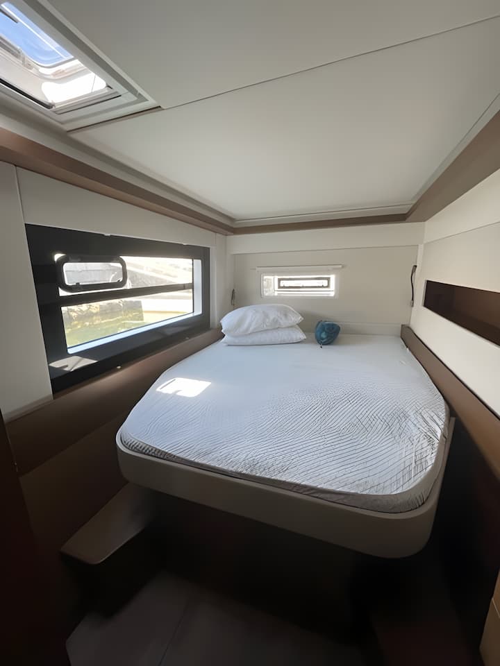 6-cabin Nautitech 46 Fly catamaran was built in 2021 and it is anchored in Furnari, Italy. The catamaran can accommodate up to 12 people. The catamaran offers 4 bathrooms. The catamaran can be rented as bareboat. Boat equipment features 2 motor, full batten main sail and self-tacking jib. It also boasts an outside speaker and inside speaker. The fully-equipped galley includes a refrigerator, kitchen equipment, oven and stovetop. The fleet operator is a viravira.co member since 2019.