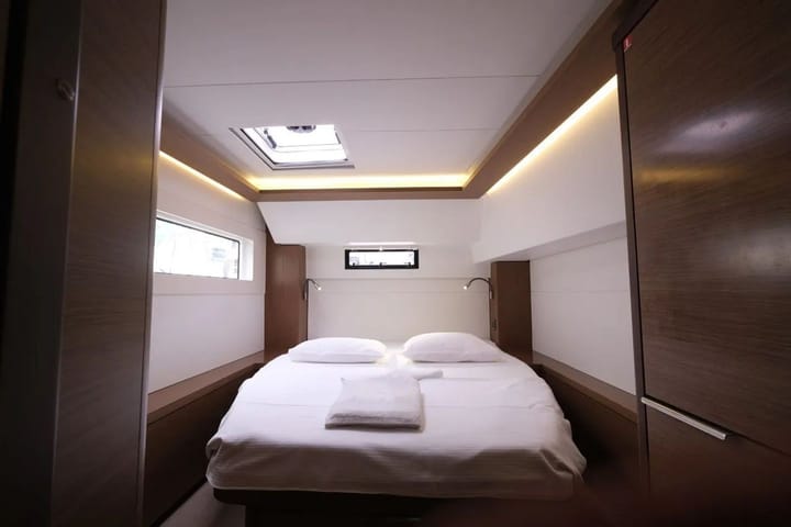 4-cabin Lagoon 46 catamaran was built in 2020 and it is anchored in Gocek, Turkey. The catamaran can accommodate up to 8 people with 4 Double Cabin. The catamaran offers 4 bathrooms. This catamaran also provides 4 showers. The catamaran can be rented as skippered or bareboat. Boat equipment features 1 motor, full batten main sail, self-tacking jib and electric winches. It also boasts an outside speaker. The fully-equipped galley includes a refrigerator, icebox, kitchen equipment, oven and stovetop. This catamaran is operated by the listing owner Judith. Judith is a viravira.co member since 2020.