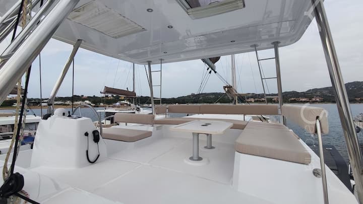 7-cabin Bali 4.8 catamaran was built in 2022 and it is anchored in Porto Rotondo, Italy. The catamaran can accommodate up to 13 people. The catamaran offers 6 bathrooms. The catamaran can be rented as bareboat. Boat equipment features 2 motor, full batten main sail, self-tacking jib and bow thruster. It also boasts a tv, outside speaker and inside speaker. The fully-equipped galley includes a refrigerator, ice machine, kitchen equipment, microwave, freezer, oven and stovetop. This catamaran is operated by the listing owner Roberta. Roberta is a viravira.co member since 2019.