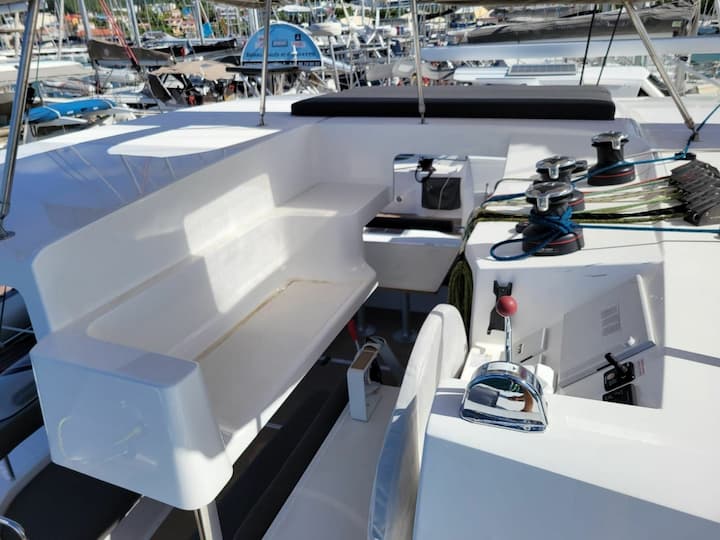 4 -Kabine Neel 47 katamaran wurde im Jahr 2024 gebaut und liegt vor Anker in Martinique, Martinique. Die katamaran bietet Platz für bis zu 8 Personen mit 4 Doppelte Kabine . Das katamaran bietet 0 -Badezimmer. Die katamaran kann als ohne Skipper gemietet werden ausgestattet. Merkmale der Bootsausstattung 1 Motor, volle latte hauptsegel, selbstklebender ausleger und bugstrahlruder. Es enthält auch externer lautsprecher und interner lautsprecher. Die voll ausgestattete Kombüse beinhaltet kühlschrank, küchenausstattung, tiefkühltruhe, ofen und herdplatte. dieser Gastgeber ist seit 2024 .