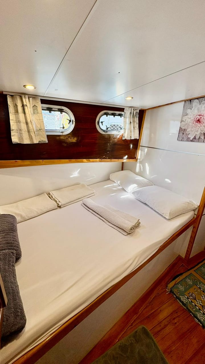 Sie sind eingeladen, die ruhigsten und natürlichsten Buchten der Ägäis mit diesem gemieteten Gulet mit 2 Kabinen und 4 Personen zu erkunden, das von Bozburun aus entlang der Hisarönü-Buchtroute segelt. Sie können dieses einzigartige Resort voller Natur, voller Ruhe, auf einer komfortablen blauen Kreuzfahrt erkunden, begleitet von unserem erfahrenen und freundlichen Team, das die Gegend sehr gut kennt. Sie können in den gemütlichen Wohnbereichen unseres Guleti entspannen und gleichzeitig unvergessliche Momente im klaren Wasser der Hisarönü-Bucht, in unberührten Buchten und bezaubernden Sonnenuntergängen genießen. Wenn Sie einen besonderen Urlaub abseits der Massen suchen, ist diese Gulet eine ideale Option für romantische Kurzurlaube, kleine Familien oder Gäste, die einen ruhigen Urlaub am Meer verbringen möchten.