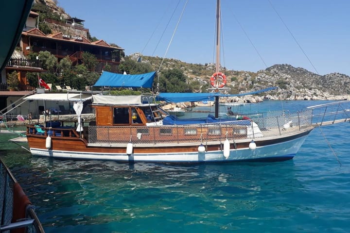 Für diejenigen, die einen angenehmen Tag auf See mit ihren Lieben in den klaren Buchten von Kas verbringen möchten, bietet unser Boot mit einer Kapazität von 8 Personen eine komfortable und ruhige Tagestour. Während der Tour ab Kaş gibt es Badepausen im türkisfarbenen Wasser. Sie werden unvergessliche Momente erleben, begleitet von einem einzigartigen Blick auf die Natur. Das Mittagessen ist in der Tourgebühr enthalten, sodass Sie den Urlaub ohne zusätzliche Planung den ganzen Tag über genießen können. Unsere Gäste können ihre Getränke von draußen nach Belieben mitbringen, was ihnen die Freiheit gibt, das Reiseerlebnis nach ihren Vorlieben zu gestalten. Mit bequemen Sitzbereichen und einer großzügigen Deckaufteilung können Sie sich entspannen und das Meer in vollen Zügen genießen. Diese Kaş-Bootstour wird mit einem professionellen Sinn für Service organisiert und ist ein idealer Zufluchtsort auf See für Familien und Gruppen von Freunden. Eine ausgezeichnete Wahl für alle, die die einzigartigen Buchten von Kaş erkunden und einen angenehmen Tag im Blau verbringen möchten!