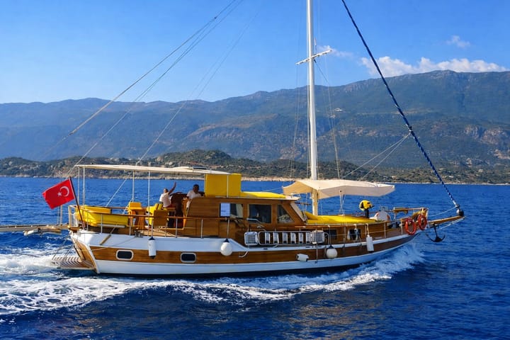 Ein besonderes Blue Tour-Erlebnis im türkisfarbenen Wasser von Kaş Sind Sie bereit, die bezaubernden Buchten und versteckten Schönheiten von Kas zu erkunden? Unsere 2010 erbaute, 15 m lange, maßgefertigte Yacht ist eine ideale Option für Familien und kleine Gruppen von Freunden, die Komfort und Privatsphäre zu zweit suchen. Unsere Bootshighlights: Geräumige Unterkunft: Unterkunft für bis zu 6 Personen mit 3 komfortablen Doppelkabinen, jede mit eigener Dusche und Toilette. Servicequalität: Unser erfahrener Kapitän und die Crew berücksichtigen jedes Detail, damit Sie sich während Ihres Urlaubs keine Sorgen machen müssen. Voll ausgestattete Küche: Köstliche Essenszubereitung bequem von zu Hause aus mit Kühlschrank, Tiefkühltruhe und allen Küchengeräten. Soziale Räume: Sonnenmatratzen, großer Esstisch und Außenlautsprechersystem für eine angenehme Zeit auf dem Boot. Im Preis inbegriffene Dienstleistungen: Treibstoff, Kapitän- und Crewservice, Endreinigung und Transitlogkosten sind im Preis enthalten; für Sie fallen keine Überraschungszuschläge an. Warum Blue Tour mit uns? Mit unserem Boot, das vom Hafen von Kaş ablegt, können Sie in den saubersten Buchten Badepausen einlegen und die Sonne mit Blick auf die Insel Meis genießen. Wenn Sie sowohl einen budgetfreundlichen als auch einen qualitativ hochwertigen Service unter den Mietoptionen von Kaş Gulet suchen, würden wir uns freuen, Sie auf unserem Boot begrüßen zu dürfen. Machen Sie den ersten Schritt zu einem traumhaften Urlaub am Meer, indem Sie jetzt buchen!
