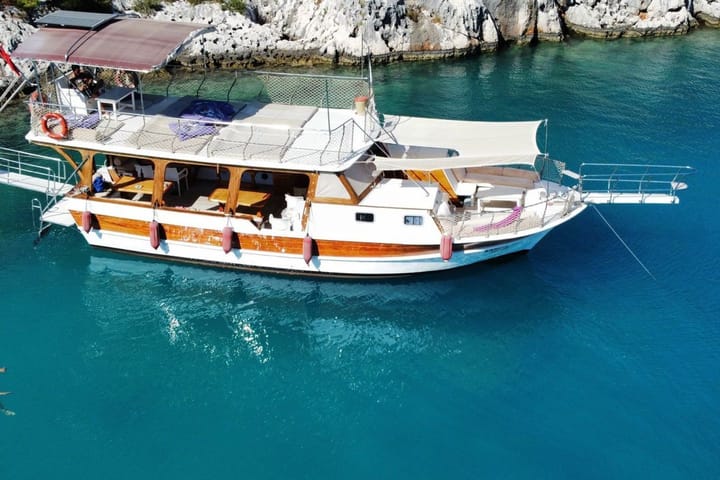 Die angenehmste Art, die azurblauen Buchten von Kekova zu erkunden, ist eine private Gulet-Tour ab Ucagiz. Auf unserer Ganztagestour, die um 10:00 Uhr beginnt, erkunden wir die faszinierendsten Punkte der Region Kekova. Unsere Route beinhaltet: Aquarium Bay, berühmt für seine türkisfarbene Farbe, Tersane Koyu, das mit seiner historischen Struktur Aufmerksamkeit erregt, Sunken City, das mit seinen Unterwasserruinen fasziniert, Kaleköy, das mit seinen Ausblicken aus den ruhigen Ecken der Natur mit Esmeralda Bay und Hamidiye Bay verblüfft. Zwischen 10:00 und 17:00 Uhr können Sie alle Buchten besuchen und Badepausen und angenehme Momente anbieten, das sind wir. Beim Mittagessen, das im Preis der Tour enthalten ist; Mujkver, Shmakhuka, frische Bohnen, Reis, Salat, Pasta mit Joghurt und gegrillte Hühnchen- oder Fischgerichte werden serviert. Alle Mahlzeiten werden auf dem Boot frisch zubereitet. Sie können Ihre Getränke mitbringen; eine Kühlung ist auf unserem Boot verfügbar. Für unsere Gäste, die Abenteuer und Spaß suchen, hat unser Boot Kanus und Paddelbretter. Für diejenigen, die die faszinierendsten Momente des Tages erleben möchten, gibt es auch eine Sonnenuntergangstour von 17:00 bis 19:00 Uhr. Auf dieser speziellen Tour können Sie die einzigartigen Farben des Sonnenuntergangs mit Blick auf Kaleköy, Sunken City und Shipyard Bay erleben. Diese private Kekova-Tour bietet eine Kombination aus Natur, Geschichte, Geschmack und Meeresgenuss und ist eine ideale Option für alle, die ein unvergessliches mediterranes Erlebnis erleben möchten.
