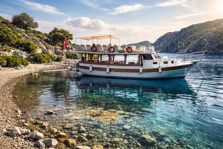 Unsere tägliche Bootstour, vorbereitet, um die schönsten Buchten von Marmaris zu erkunden, beginnt um 10:30 Uhr und endet um 17:00 Uhr. Während der Tour, die insgesamt 6,5 Stunden dauert, werden in jeder Bucht durchschnittlich 45 Minuten Schwimmen angeboten. Eine unvergessliche blaue Reise erwartet Sie, begleitet von Schwimmen im türkisfarbenen Wasser, Sonnenbaden und einzigartigen Landschaften. 🌊 Reiseroute für Bootsausflüge • Kamelieninsel • Klosterbucht • American's Cove • Sağliman Paradise Cove • Rote Sandbucht Diese spezielle Route, die sich durch ihr klares Wasser und die natürliche Schönheit von Marmaris auszeichnet, bietet Badepausen in unberührten Buchten. 🍽️ Mittagsmenü (im Preis enthalten) • Gegrillter Fisch • Salat der Saison • Pasta • Kartoffelsalat • Helva • Tee-Leckereien • Wassermelone 👉 Getränke werden auf dem Boot verkauft.
