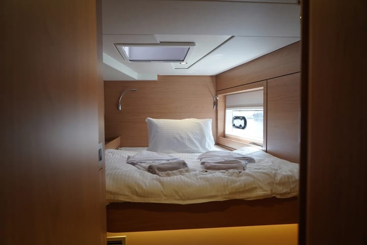 Bali 4.6 — 2025 ist ein Katamaran der neuen Generation, entworfen für Gäste, die ein luxuriöses blaues Kreuzfahrterlebnis mit modernem Design, geräumigen Wohnbereichen und einer hochwertigen Ausstattung suchen. Dank ihrer 14,28 m vollen Länge, 7,6 m Breite und ausgewogenen Rumpfstruktur bietet sie sowohl eine komfortable als auch sichere Kreuzfahrt auf der Kreuzfahrt. Yanmar-Motoren mit 2 x 57 PS und eine effiziente Rumpfform sorgen für komfortables und wirtschaftliches Cruisen auch auf langen Strecken. Die Unterkunft ist so konzipiert, dass sie den Komfort der Gäste maximiert: 4 Doppelkabinen, 1 Etagenkabine, 1 Skipperkabine und 2 zusätzliche Betten in der Lounge bieten komfortablen Wohnraum für bis zu 10+2 Personen. Modernes Design, geräumige Stauräume und natürliches Licht stechen in jeder Kabine hervor. Mit insgesamt 4+1 Bädern/WC (4 davon elektrisch) ist eine komfortable Nutzung auch in überfüllten Gruppen gewährleistet. Der Innenraum verfügt über eine voll ausgestattete Küche (Herd-Ofen, Mikrowelle, Geschirrspüler, großer Kühlschrank und Kühler), Klimaanlage, Heizung, Wasserkocher und leistungsstarke elektrische Infrastruktur (Generator, Wechselrichter, Servicebatterien). Die geräumige Lounge kombiniert die Innen- und Außenbereiche mit Panoramafenstern und dem Konzept des „offenen Raums“ und bildet so eine der stärksten Seiten der Yacht. Der Wohnbereich im Freien bietet komfortable Nutzung sowohl zum Bügeleisen als auch zum Cruisen mit Flybridge, geräumigen Sonnenmatten, Cockpitpolstern, Deckdusche, Badeleiter und Beiboot mit Außenbordmotor. Elektrische Ankerwinde, elektrische Kräne, Aufzugsgroßsegel und Ausrüstung für Genua sorgen ebenfalls für komfortables und angenehmes Segeln unter Segeln. Bali 4.6 — 2025 ist eine voll ausgestattete und luxuriöse Katamaran-Option mit Besatzung, ideal für große Familien und Gruppen von Freunden mit einer Gästekabine mit 4 Doppelbetten und einem Stockbett, einer separaten Skipper-Kabine und Lounge-Kapazität.