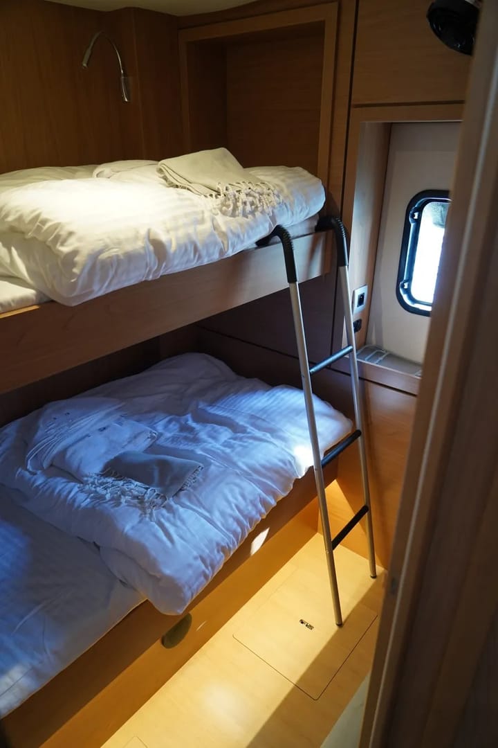 Die Liegeplatzkapazität ist 13, aber maximal 11 Personen können übernachten.