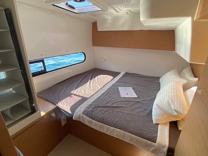 6 -Kabine Excess 11 katamaran wurde im Jahr 2024 gebaut und liegt vor Anker in Rom, Italien. Die katamaran bietet Platz für bis zu 12 Personen . Das katamaran bietet 2 -Badezimmer. Die katamaran kann als ohne Skipper gemietet werden ausgestattet. Merkmale der Bootsausstattung 2 Motor. Es enthält auch externer lautsprecher und interner lautsprecher. Die voll ausgestattete Kombüse beinhaltet kühlschrank, küchenausstattung, ofen und herdplatte. der Flottenbetreiber ist seit 2019 .