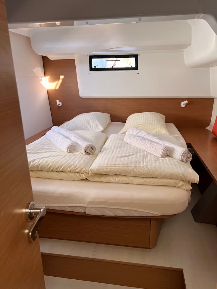 4 -Kabine Excess 14 katamaran wurde im Jahr 2024 gebaut und liegt vor Anker in Sibenik, Kroatien. Die katamaran bietet Platz für bis zu 10 Personen . Das katamaran bietet 3 -Badezimmer. Die katamaran kann als ohne Skipper gemietet werden ausgestattet. Merkmale der Bootsausstattung 2 Motor, volle latte hauptsegel und selbstklebender ausleger. Es enthält auch externer lautsprecher und interner lautsprecher. Die voll ausgestattete Kombüse beinhaltet kühlschrank, küchenausstattung, ofen, herdplatte und kaffeemaschine. der Flottenbetreiber ist seit 2019 .