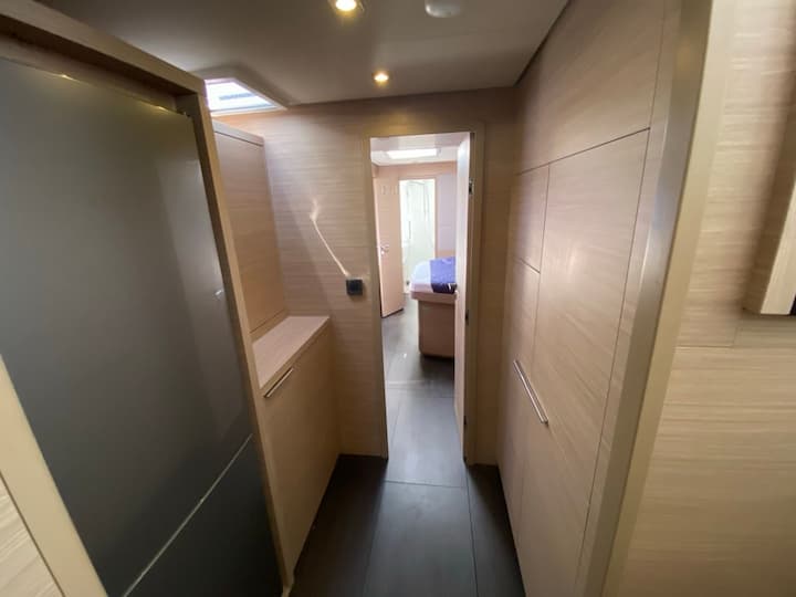 5 -cabin Lagoon 55 catamarán se construyó en 2024 y está anclado en Antigua, Antigua y Barbuda. El catamarán puede alojar hasta 10 personas . El catamarán ofrece 5 baños. El catamarán lo navega un patrón profesional . Características del equipo del barco 2 motor, listón completo vela principal y jab autoadhesivo. También cuenta con altavoz externo. La cocina totalmente equipada incluye máquina de café. Este catamarán lo gestiona el propietario del anuncio Gianluca. Gianluca es miembro de viravira.co desde 2019 .
