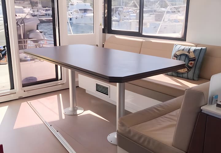 6 -cabin Bali 4.1 catamarán se construyó en 2020 y está anclado en Atenas, Grecia. El catamarán puede alojar hasta 10 personas . El catamarán ofrece 4 baños. El catamarán se puede alquilar con patrón sin tripulación . Características del equipo del barco 2 motor, listón completo vela principal y jab autoadhesivo. También cuenta con altavoz externo y altavoz interno. La cocina totalmente equipada incluye nevera, equipo de cocina, congelador, horno y estufa. Este catamarán lo gestiona el propietario del anuncio Panagiotis. Panagiotis es miembro de viravira.co desde 2019 .
