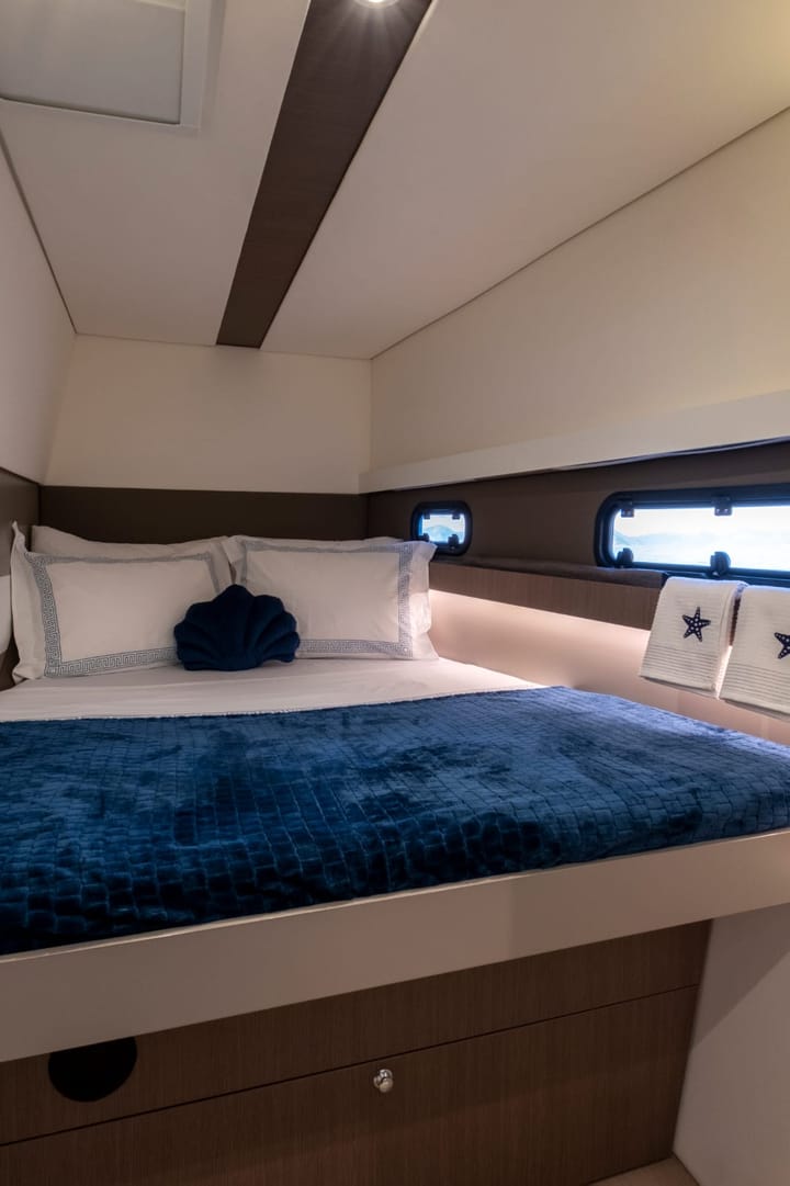 El catamarán Bali 4.1 modelo 2020 ofrece un servicio de alquiler de catamaranes y cruceros azules en las bahías de Fethiye y Gocek desde Fethiye. Con una longitud de 12,5 metros y una anchura de 7 metros, el catamarán es la opción ideal para familias y grupos de amigos, con su estructura de navegación cómoda y equilibrada. El barco tiene 4 cabinas dobles y 4 baños y tiene una capacidad total de 8 personas. Se alquila con un capitán. Gracias a su estructura de doble motor, ofrece una navegación segura y cómoda. Una cocina totalmente equipada, colchonetas, TV, Wi-Fi, generador y canoa son estándar a bordo. No hay servicio de cocina; los huéspedes pueden usar la cocina del barco o ir a los restaurantes de las bahías atracadas. Antes de las vacaciones, el capitán contacta con los huéspedes y planifican las compras juntos. Al ofrecer comodidad, paz y libertad a la vez, este catamarán es la elección ideal para quienes desean disfrutar de unas vacaciones inolvidables en el mar en las exclusivas bahías de Fethiye y Göcek. Puede ponerse en contacto con nosotros para solicitar el alquiler de catamarán.