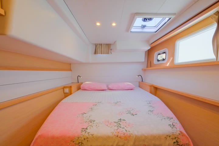 El catamarán Lagoon 450 F modelo 2016 ofrece un servicio azul de excursiones y alquiler de yates en las bahías de la región de Gocek con una longitud de 14 metros y una anchura de 7 metros. Con sus amplias salas de estar, su equilibrado carácter de crucero y su diseño orientado a la comodidad, es la opción ideal de vacaciones en el mar para familias y grupos pequeños. El catamarán tiene 3 cabinas dobles y 3 baños y tiene una capacidad máxima de 6 personas. El barco, matriculado en el puerto de Göcek, ofrece un crucero azul agradable y seguro por las bahías más populares de la región. Cocina totalmente equipada, suficientes colchonetas para todos los huéspedes, TV, aire acondicionado, Wi-Fi, generador, máquina de agua, bote y cafetera disponibles a bordo. Antes de las vacaciones en barco, el capitán se comunica con los huéspedes y planifica juntos la lista de compras. En el barco trabajan un total de 2 personas, incluidos 1 capitán y 1 marinero. El servicio de cocina es opcional y se puede ofrecer por un suplemento diario si se solicita. Es una opción de catamarán ideal para los huéspedes que desean vivir juntos con comodidad, tranquilidad y placer en el mar en las exclusivas bahías de Göcek y Fethiye. Simplemente póngase en contacto con nosotros para solicitar el alquiler de barcos.