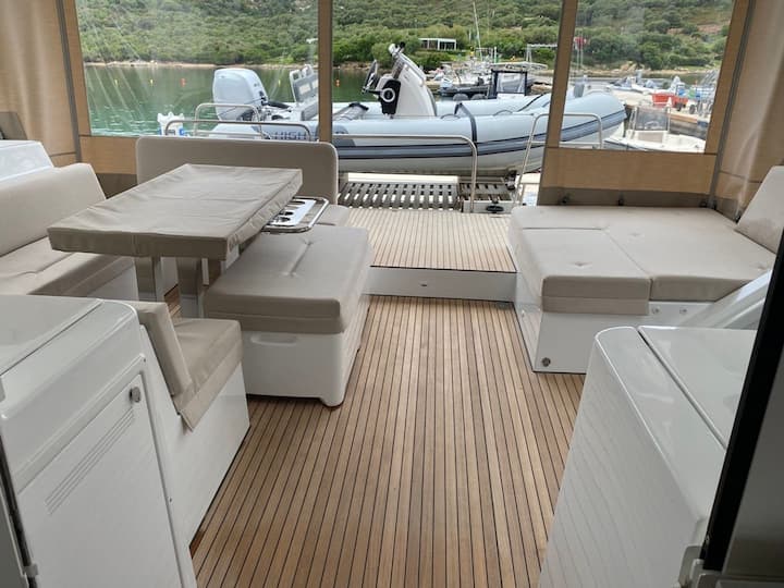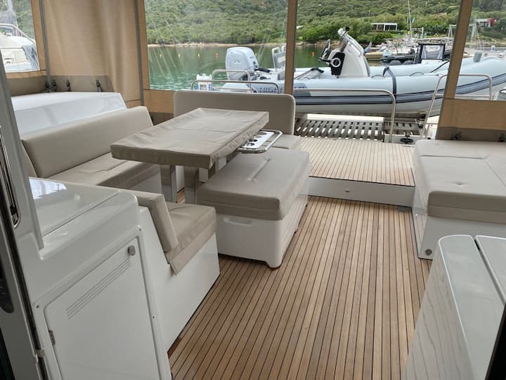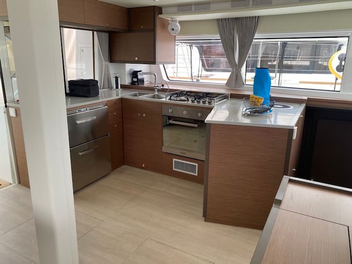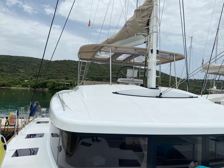 5 -cabin Lagoon 52 Fly catamarán se construyó en 2022 y está anclado en Portisco, Italia. El catamarán puede alojar hasta 12 personas . El catamarán ofrece 4 baños. El catamarán lo navega un patrón profesional . Características del equipo del barco 2 motor, listón completo vela principal y jab autoadhesivo. También cuenta con altavoz externo. La cocina totalmente equipada incluye nevera, máquina de hielo y máquina de café. Este catamarán lo gestiona el propietario del anuncio Gianluca. Gianluca es miembro de viravira.co desde 2019 .
