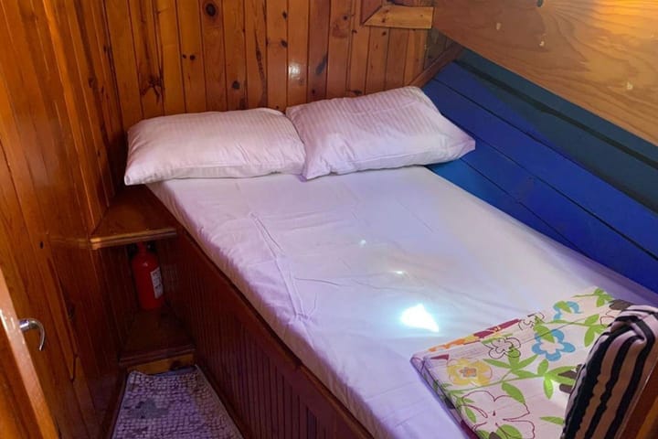 Esta elegante y cómoda goleta de Demre ofrece una experiencia de crucero azul ideal para grupos pequeños y familias, con una estructura de 3 cabinas y una capacidad de 6 pasajeros. Es una gran opción para quienes buscan unas vacaciones en el mar que sean completamente exclusivas para usted, lejos de las multitudes. Cómodas salas de estar y alojamiento En nuestra garganta; 3 cabinas privadas Camas y armarios cómodos están disponibles. Gracias al amplio salón y a las cómodas zonas de estar, puede disfrutar de la comodidad de su hogar durante su estancia en el mar. Terrazas y áreas exteriores Puede disfrutar del mar y del sol durante todo el día con una amplia terraza, colchonetas y grupos de asientos. Hay una zona de comedor en la cubierta trasera, una zona de relajación en la cubierta delantera y una escalera de baño para bajar fácilmente al mar. Una experiencia inolvidable en Demre Bays Le espera un tranquilo viaje azul por rutas repletas de belleza histórica y natural de Demre, Kekova, Uçagiz y sus alrededores, acompañado de escapadas para nadar, explorar la bahía y puestas de sol únicas. Hacemos que sus vacaciones sean agradables y sin problemas con nuestro concepto de servicio profesional orientado a la satisfacción de los huéspedes y la tripulación. ¿Por qué esta goleta? Alquiler de goletas privadas en Demre 3 cabinas, capacidad para 6 personas Ideal para familias y grupos pequeños Barco cómodo y bien mantenido La ruta perfecta a Kekova y sus alrededores Para aquellos que buscan un alquiler de goletas en Demre, un crucero azul Kekova, una goleta de 6 plazas o un yate privado, esta goleta ofrece unas vacaciones tranquilas y agradables en el mar.