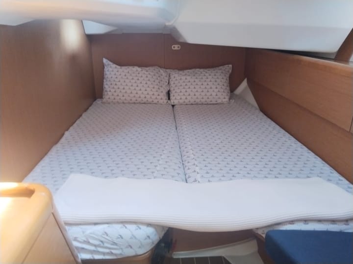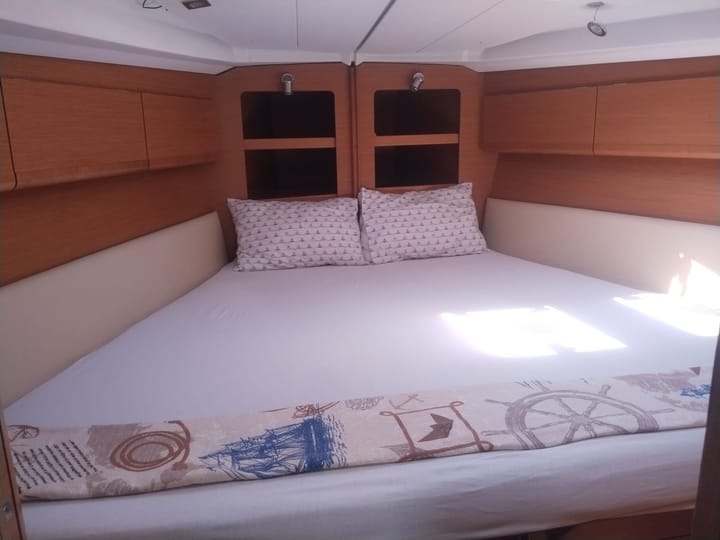 Construido en 2011, el velero Jeanneau 44i ofrece un servicio de alquiler de veleros y cruceros azules en las bahías de Fethiye y Gocek desde el puerto deportivo de Fethiye. Con una eslora de 14 metros, el barco es la opción ideal para los amantes de la navegación, con un rendimiento de navegación equilibrado y áreas de estar funcionales. El velero tiene un total de 3 cabinas, 1 cabina principal y 2 cabinas dobles. El barco, que tiene 2 baños y aseos, tiene una capacidad máxima de 6 personas. Se alquila con un capitán. El equipo del barco incluye una vela mayor sinuosa, una Génova sinuosa, la hélice principal, el piloto automático, el molinete eléctrico, los paneles solares, el bimini y el toldo. El sistema de audio y los altavoces de cubierta están disponibles. La cocina totalmente equipada tiene horno, hornillo, fregadero y el equipo de cocina necesario. No hay servicio de cocina a bordo. Los huéspedes pueden usar la cocina del barco o ir a los restaurantes de las bahías atracadas. El barco cuenta con el servicio de un capitán. Es una opción de navegación ideal para los huéspedes que desean vivir una verdadera experiencia de navegación en las tranquilas bahías de Fethiye y Göcek y pasar unas vacaciones cómodas y tranquilas en el mar. Puede ponerse en contacto con nosotros para solicitar un chárter de barcos.