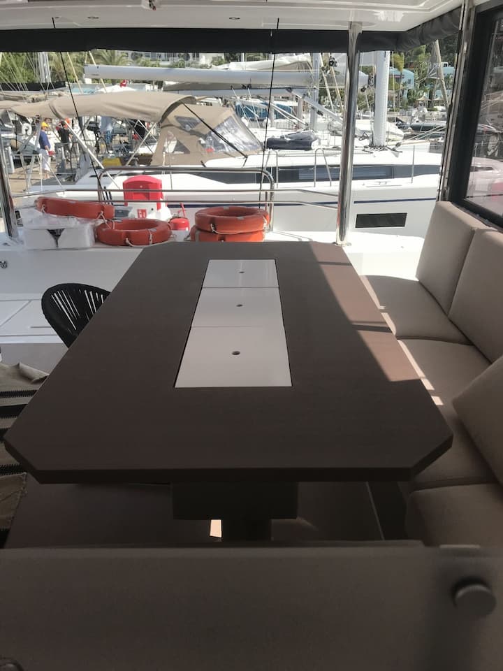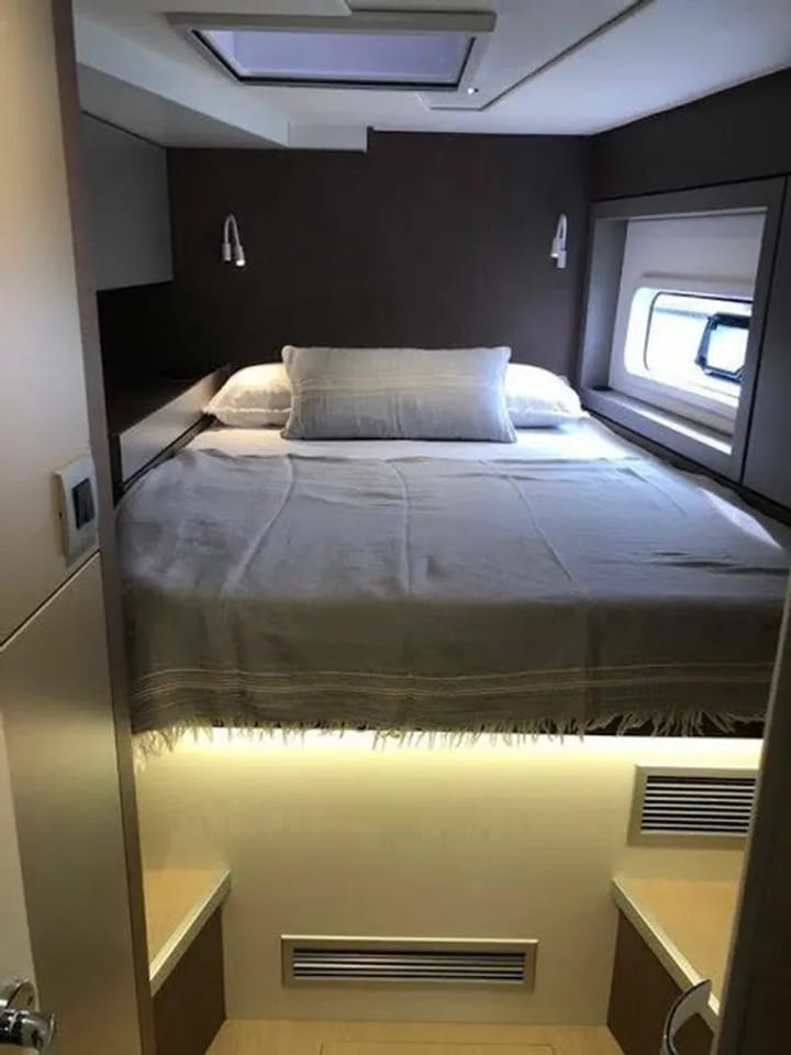 Bali 4.6 Open Space — 2021 est un modèle de catamaran de luxe d'une longueur de 14,28 mètres et d'une largeur totale de 7,66 mètres. Avec sa carrosserie robuste en fibre de verre (GRP), il permet une navigation stable et sûre, tandis que sa profondeur de tirant d'eau de 1,22 mètre garantit une manœuvrabilité confortable dans les zones proches du rivage. Ce modèle propose un total de 5 configurations de cabines : 4 cabines doubles spacieuses et 1 cabine simple. Sur les charters avec capitaine, la cabine individuelle est attribuée au capitaine, mais sur les charters sans capitaine, elle est adaptée aux passagers. La section salon peut être convertie pour créer un espace de couchage supplémentaire pour 1 personne, offrant ainsi une capacité d'hébergement de 8+1 personnes. Le salon intérieur, les 5 toilettes électriques avec douche, la cuisine entièrement équipée (réfrigérateur, congélateur, four, cuisinière, lave-vaisselle, cafetière, machine à glaçons) et le système de climatisation (dans le salon et les cabines) permettent de vivre confortablement au bord de la mer. De plus, le chauffage et le système d'eau chaude peuvent être utilisés en toutes saisons. L'équipement de navigation inclut la grand-voile classique et le système de treuils électriques. Le Flybridge améliore le confort à la fois en croisière et au mouillage grâce à un auvent bimini et à une spacieuse terrasse. L'indépendance énergétique est atteinte grâce à des panneaux solaires, à un onduleur, à un générateur d'eau et à des groupes électrogènes. L'équipement de sécurité comprend un guindeau de 1500 W, un système de chaîne d'ancrage, des gilets de sauvetage gonflables automatiques, un radeau de sauvetage, des tubes à incendie et des équipements de plongée avec tuba. L'équipement de navigation inclut un GPS avec cartes Garmin, une interface de pilote automatique, une radio VHF, un baromètre et un thermomètre. Le pont du catamaran vous permet de passer un moment confortable et agréable grâce à des équipements tels que l'aileron, le grill, le coin salon du flybridge, les coussins du poste de pilotage, la plateforme de bain et la douche extérieure. Les prises 220 V et 12 V vous permettent de recharger facilement vos appareils électroniques pendant la croisière. Bali 4.6 Open Space — 2021 offre de puissantes performances grâce à un système diesel intérieur à deux moteurs. La capacité de carburant est de 800 litres et la capacité du réservoir d'eau de 860 litres. Il offre une efficacité élevée, un fonctionnement silencieux et une conduite confortable sur les longs trajets en bleu. Avec son design moderne, son grand volume intérieur, son efficacité énergétique et ses équipements sûrs, c'est le catamaran idéal pour les croisières bleues le long de la côte turque, les vacances en famille ou les croisières avec un capitaine privé.