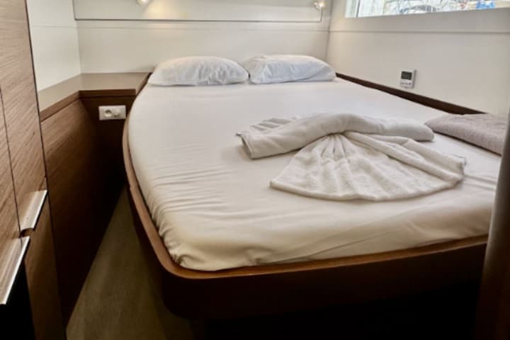 Le 6 -cabin Lagoon 40 catamaran a été construit en 2024 et est ancré à Fethiye, Turquie. Le catamaran peut accueillir 11 personnes avec 4 Cabine double et un salon d'une capacité de 2 lits d'appoint par personne . Le catamaran propose des toilettes 4. Ce catamaran propose également 4 douches. Le catamaran peut être loué en tant que skipper coque nue . Caractéristiques de l'équipement du bateau 2 moteur, full batten main sail, poche autobloquante et guindeau électrique. Il contient également haut-parleur extérieur et haut-parleur intérieur. La cuisine entièrement équipée comprend réfrigérateur, équipement de cuisine, four à micro-ondes, four, plaque de cuisson et machine à café. Ce catamaran est géré par le propriétaire de l'annonce Nurevşan. Nurevşan est membre de viravira.co depuis 2023 .