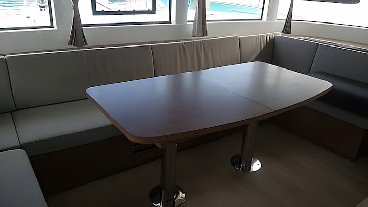 Le 6 -cabin Lagoon 50 catamaran a été construit en 2019 et est ancré à Mahé, Victoria, Seychelles. Le catamaran peut accueillir 12 personnes . Le catamaran propose des toilettes 6. Le catamaran . Il est piloté par un skipper professionnel . Caractéristiques de l'équipement du bateau 2 moteur, full batten main sail et poche autobloquante. Il contient également haut-parleur extérieur et haut-parleur intérieur. La cuisine entièrement équipée comprend réfrigérateur, équipement de cuisine, four et plaque de cuisson. l'opérateur de la flotte est membre de viravira.co depuis 2019 .