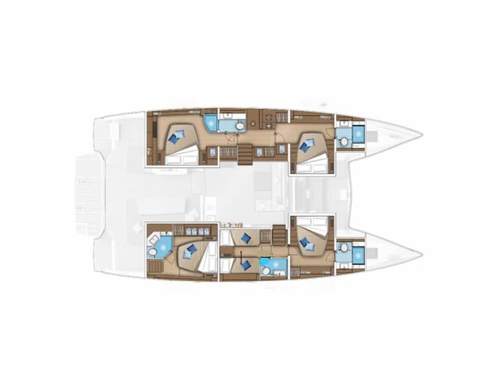 Le 5 -cabin Lagoon 55 catamaran a été construit en 2023 et est ancré à Palma de Majorque, Espagne. Le catamaran peut accueillir 10 personnes . Le catamaran propose des toilettes 4. Le catamaran . Il est piloté par un skipper professionnel . Caractéristiques de l'équipement du bateau 2 moteur, full batten main sail, poche autobloquante et guindeau électrique. Il contient également télévision. La cuisine entièrement équipée comprend réfrigérateur, machine à glaçons, machine à glace et machine à café. cet hôte est membre de viravira.co depuis 2022 .