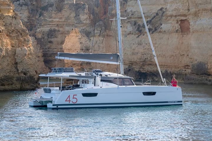 Le 6 -cabin Fountaine Pajot Elba 45 catamaran a été construit en 2025 et est ancré à Rhodes, Grèce. Le catamaran peut accueillir 12 personnes . Le catamaran propose des toilettes 5. Le catamaran peut être loué en tant que skipper coque nue . Caractéristiques de l'équipement du bateau 2 moteur, full batten main sail et poche autobloquante. La cuisine entièrement équipée comprend réfrigérateur et machine à café. Ce catamaran est géré par le propriétaire de l'annonce Nikolas. Nikolas est membre de viravira.co depuis 2019 .