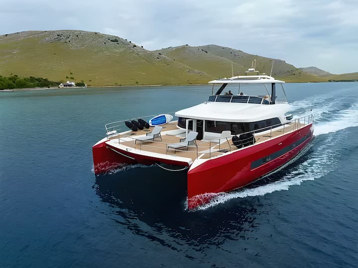 Le 4 -cabin Lagoon Sixty 7 catamaran a été construit en 2023 et est ancré à Split, Croatie. Le catamaran peut accueillir 8 personnes . Le catamaran propose des toilettes 4. Le catamaran . Il est piloté par un skipper professionnel . Caractéristiques de l'équipement du bateau 2 moteur. Il contient également télévision, haut-parleur extérieur et haut-parleur intérieur. La cuisine entièrement équipée comprend réfrigérateur, machine à glace, équipement de cuisine, four, plaque de cuisson et lave-vaisselle. Ce catamaran est géré par le propriétaire de l'annonce Nina. Nina est membre de viravira.co depuis 2019 et possède un Super Boat .