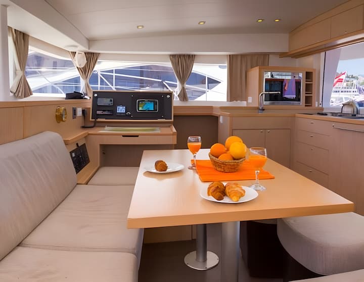 Le 6 -cabin Lagoon 400 S2 catamaran a été construit en 2013 et est ancré à Split, Croatie. Le catamaran peut accueillir 12 personnes . Le catamaran propose des toilettes 4. Ce catamaran propose également 4 douches. Le catamaran peut être loué en tant que skipper coque nue . Caractéristiques de l'équipement du bateau 2 moteur, full batten main sail, poche autobloquante et guindeau électrique. Il contient également haut-parleur extérieur et haut-parleur intérieur. La cuisine entièrement équipée comprend réfrigérateur, équipement de cuisine, four et plaque de cuisson. notre partenaire expérimenté est membre de viravira.co depuis 2019 .