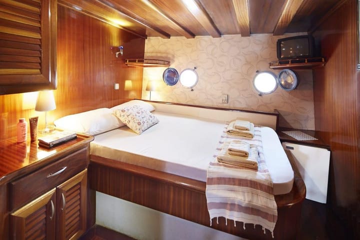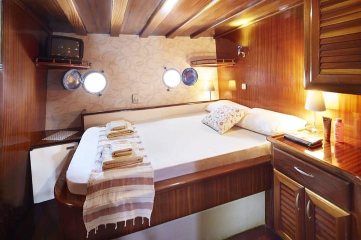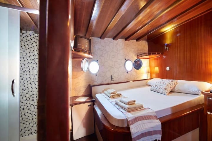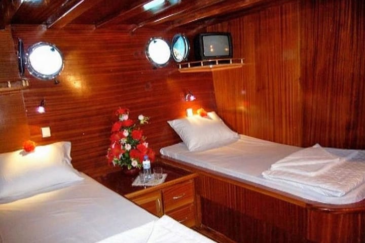Le 8 -cabin Fait sur mesure gulet a été construit en 2007 et est ancré à Bozburun, Turquie. Le gulet peut accueillir 16 personnes . Le gulet propose des toilettes 8. Ce gulet propose également 8 douches. Le gulet . Il est piloté par un skipper professionnel et est accompagné d'un équipage . Caractéristiques de l'équipement du bateau. La cuisine entièrement équipée comprend réfrigérateur et équipement de cuisine. Ce gulet est géré par le propriétaire de l'annonce Alper. Alper est membre de viravira.co depuis 2019 .