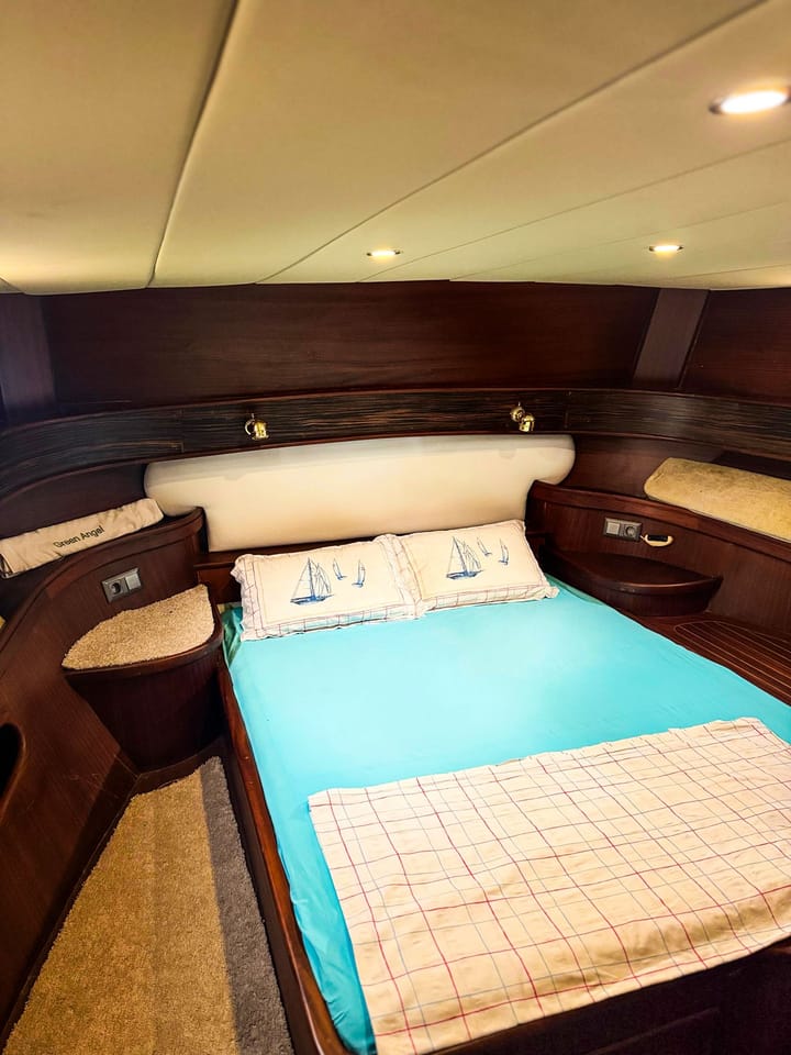 Cette goélette de luxe de 16 mètres de long propose une expérience Blue Ride spécialement conçue pour les petits groupes et les couples grâce à sa structure compacte mais extrêmement confortable. Fabriquée en 2008, notre goélette peut accueillir confortablement jusqu'à 4 personnes. Elle offre un grand volume intérieur, des détails en teck et en acajou soigneusement travaillés, ainsi que de l'esthétique et de la fonctionnalité. Confort de l'intérieur et de la cabine Notre bateau compte 2 cabines au total, une cabine principale et une cabine double. Chaque cabine est équipée d'une salle de bains privative et de toilettes domestiques électriques. Le salon dégage une atmosphère élégante et chaleureuse ; il y a un coin salon confortable, une table à manger, une cuisine entièrement équipée et un coin bar. Les équipements qui offrent le plus haut niveau de confort aux clients incluent une machine à glace, une machine à café, un système électrique 220V/24V/12V et la climatisation. L'utilisation de la climatisation est possible pendant la nuit. Performance, équipement de croisière et sécurité Notre planeur a une vitesse de croisière de 9 nœuds avec un moteur Volvo de 235 CV. Grâce au générateur de 9,5 kVA, tous les systèmes électriques fonctionnent sans interruption. Tout l'équipement de navigation et de sécurité est complet, y compris le radar, la boussole, le GPS, le profondimètre, le pilote automatique, la carte électronique et les appareils de communication par satellite. Le réservoir de carburant de 3 000 litres et les 2 400 litres d'eau potable permettent une navigation confortable et ininterrompue sur les longs trajets. Espaces extérieurs et activités agréables La terrasse spacieuse offre un maximum de confort à l'extérieur avec des matelas de soleil, des sièges à baldaquin, une douche sur le pont et une échelle de mer. Un bateau de service (dériveur) est disponible à bord. Du matériel de pêche et de plongée est également mis à la disposition des clients. Avec son silence, son design élégant et son parcours équilibré, cette goélette spéciale en forme de ketch est idéale pour les clients qui recherchent une balade bleue paisible et personnalisée loin de la foule.