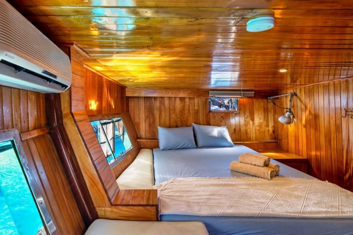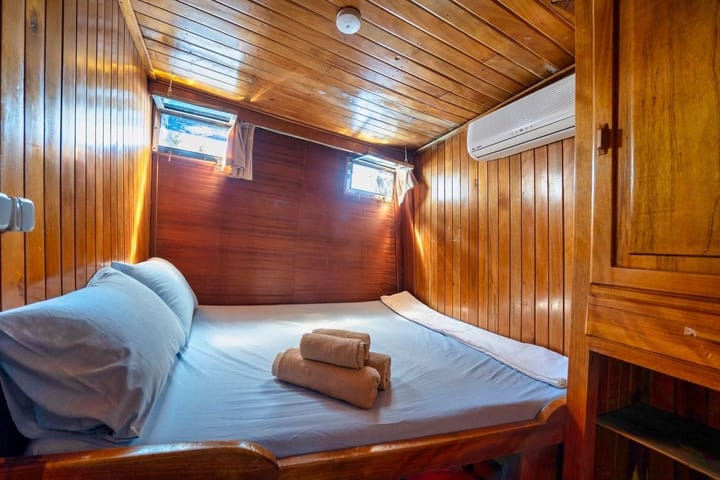 Cette goélette de luxe de 25 mètres au départ de Fethiye propose une croisière bleue inoubliable et une expérience de location de goélettes grâce à son design moderne, ses espaces de vie spacieux et ses cabines confortables. Grâce à sa structure spacieuse d'une largeur de 6 mètres, c'est une option idéale pour les clients qui souhaitent passer des vacances confortables et agréables en mer. Notre bateau compte 6 cabines au total, dont une cabine principale. Toutes les cabines sont conçues avec soin pour votre confort. Chaque cabine est équipée de la climatisation et 6 heures de climatisation sont fournies par jour. Des lits confortables, des salles de bains privées et des espaces de rangement pratiques garantissent un séjour confortable. Vous pouvez profiter de la mer et de la vue tout au long de la journée grâce à de spacieuses terrasses, à des matelas de soleil, à une table à manger extérieure et à un salon spacieux. Que vous preniez un bain de soleil, que vous lisiez un livre ou que vous organisiez d'agréables dîners avec vos proches, notre bateau vous offre une atmosphère de vacances paisible et gratuite. Un équipage professionnel de 4 personnes expérimentées dans le domaine (capitaine, cuisinier et équipe de service) répondra à tous vos besoins tout au long de vos vacances, en vous fournissant un service impeccable. Chaque détail, de la planification des itinéraires au service de restauration, est pensé pour votre confort. Idéale pour les familles et les groupes d'amis qui souhaitent explorer les baies turquoises, les plages cachées et la beauté naturelle de Fethiye, cette location de goélette privée convient aux vacances à la semaine comme aux vacances de longue durée. Réservez dès maintenant pour passer des vacances privilégiées à la mer sur un bateau qui vous appartient entièrement, loin de la foule.