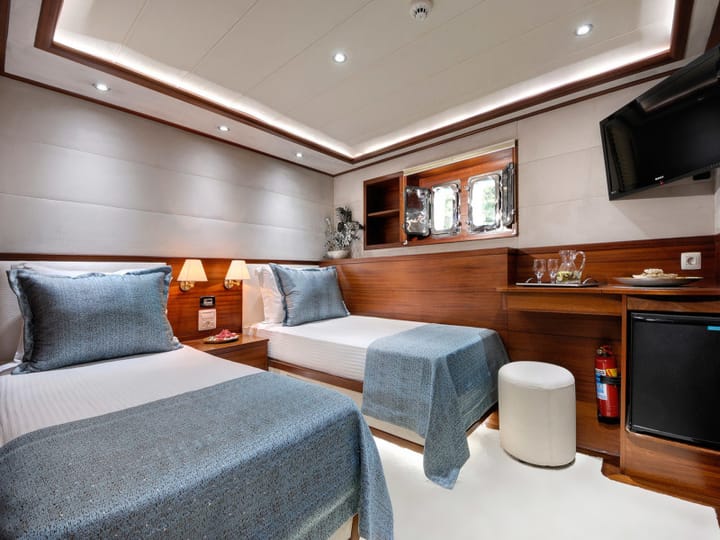 Le 5 -cabin Fait sur mesure gulet a été construit en 2011 et est ancré à Split, Croatie. Le gulet peut accueillir 10 personnes . Le gulet propose des toilettes 5. Le gulet . Il est piloté par un skipper professionnel et est accompagné d'un équipage . Caractéristiques de l'équipement du bateau 2 moteur, full batten main sail et poche autobloquante. Il contient également télévision. La cuisine entièrement équipée comprend machine à glace et machine à café. Ce gulet est géré par le propriétaire de l'annonce Maria. Maria est membre de viravira.co depuis 2022 .