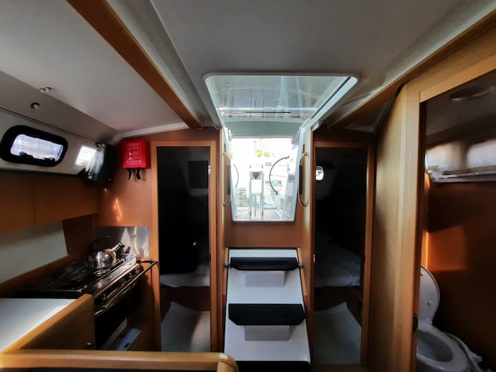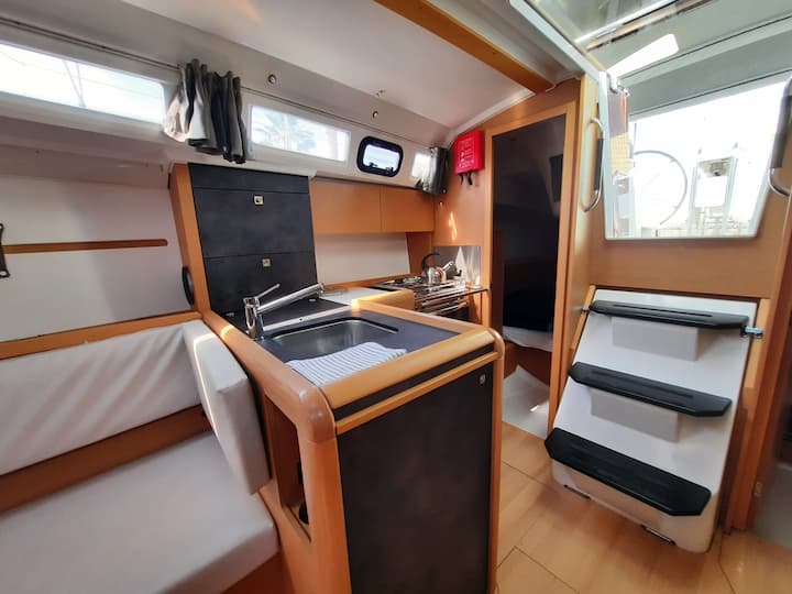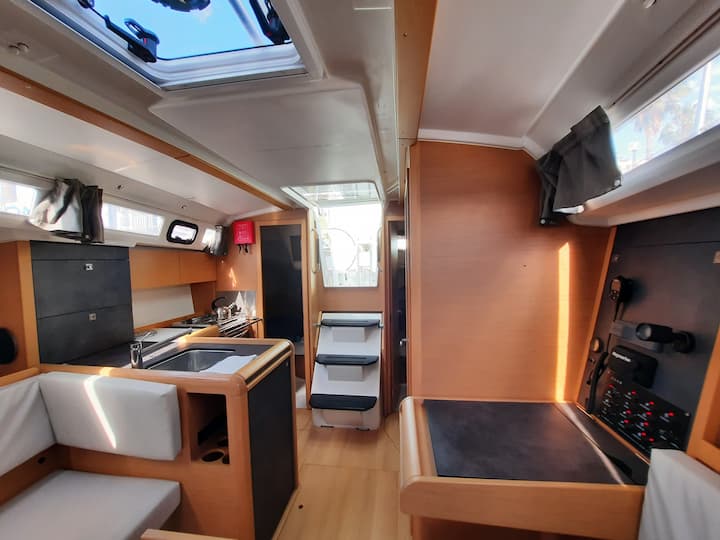 Le 3 -cabin Jeanneau Sun Odyssey 349 voilier a été construit en 2020 et est ancré à Furnari, Italie. Le voilier peut accueillir 8 personnes . Le voilier propose des toilettes 1. Le voilier peut être loué en tant que skipper coque nue . Caractéristiques de l'équipement du bateau 1 moteur. Il contient également haut-parleur extérieur et haut-parleur intérieur. La cuisine entièrement équipée comprend réfrigérateur, équipement de cuisine, four et plaque de cuisson. l'opérateur de la flotte est membre de viravira.co depuis 2019 .