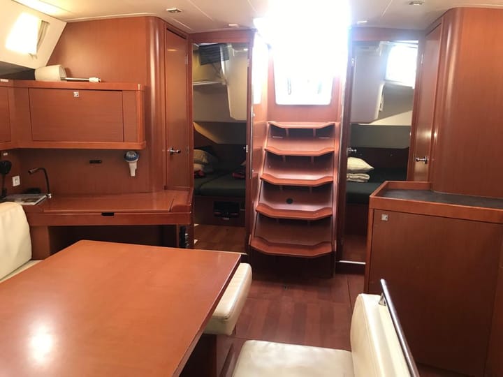 Le 4 -cabin Beneteau Oceanis 45 voilier a été construit en 2015 et est ancré à Palma de Majorque, Espagne. Le voilier peut accueillir 10 personnes . Le voilier propose des toilettes 2. Le voilier peut être loué en tant que skipper coque nue . Caractéristiques de l'équipement du bateau 1 moteur, full batten main sail, poche autobloquante et propulseur d'étrave. La cuisine entièrement équipée comprend réfrigérateur. Ce voilier est géré par le propriétaire de l'annonce Yasmina. Yasmina est membre de viravira.co depuis 2019 .