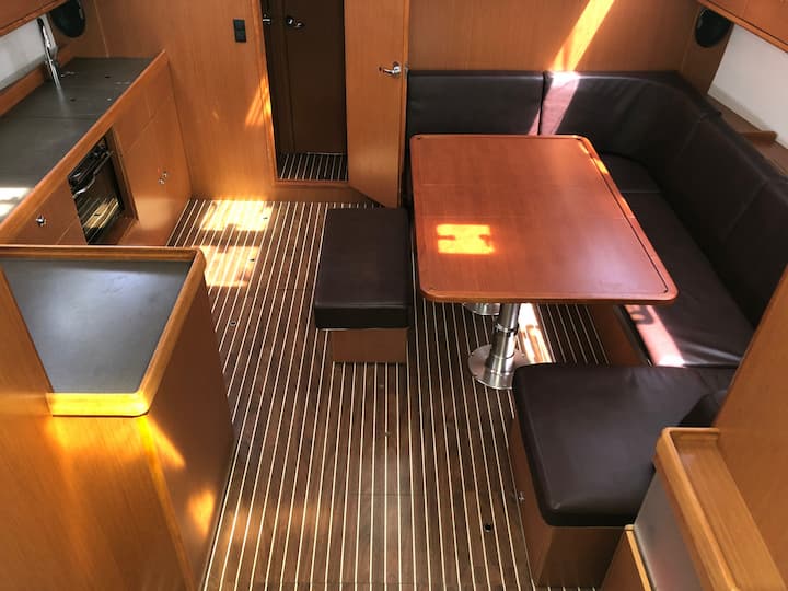 Après notre aventure en Grèce l'année dernière, choisir la Costa Smeralda comme prochaine destination s'est avéré être une excellente décision. La région nous a captivés par son charme et sa beauté, même si nous devions être prêts à faire la queue aux ports de plaisance. Le yacht en lui-même était en excellent état ; il était propre et bien entretenu, et les nouvelles voiles ont été une bonne surprise. Un petit aspect que nous avons remarqué, c'est la passarella, qui était fabriquée en bois épais. C'est idéal pour l'entraînement, mais nous aurions peut-être préféré quelque chose de plus léger. Notre voyage a eu lieu fin août et le soir, de nombreux ports de plaisance étaient bondés et complets. Dans l'ensemble, la qualité du yacht, le processus d'embarquement initial et l'expérience dans son ensemble ont été très satisfaisants, ce qui en a fait un voyage mémorable.