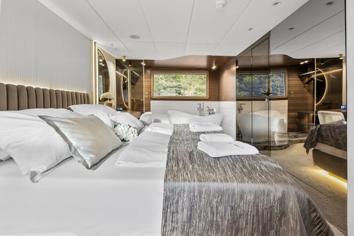 Le 18 -cabin Fait sur mesure yacht à moteur a été construit en 2019 et est ancré à Split, Croatie. Le yacht à moteur peut accueillir 36 personnes . Le yacht à moteur propose des toilettes 18. Le yacht à moteur . Il est piloté par un skipper professionnel et est accompagné d'un équipage . Caractéristiques de l'équipement du bateau 1 moteur. l'opérateur de la flotte est membre de viravira.co depuis 2023 .