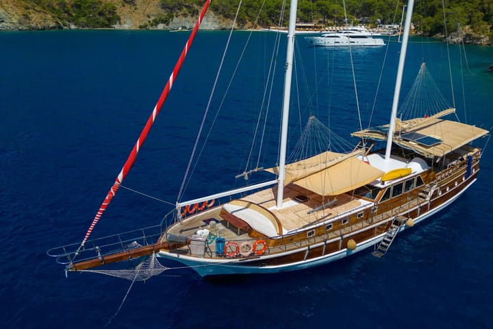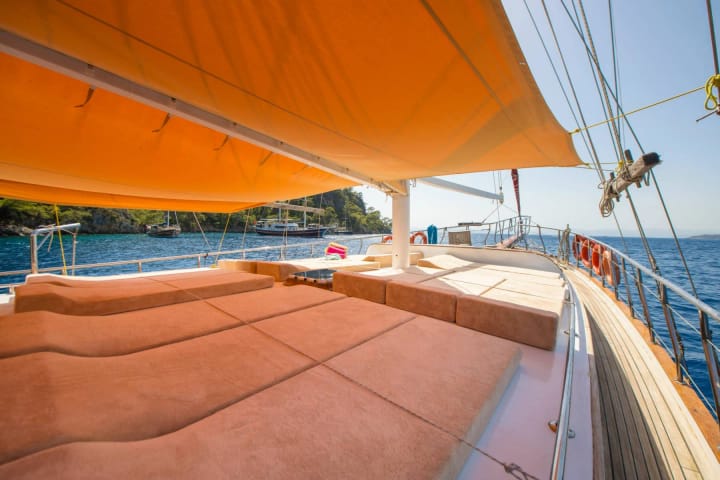8-cabin Custom Made gulet was built in 2002 and it is anchored in Fethiye, Turkey. The gulet can accommodate up to 16 people. The gulet offers 8 bathrooms. This gulet also provides 8 showers. The gulet is navigated by a professional skipper and comes with a crew. It also boasts a bar. The fully-equipped galley includes a refrigerator and kitchen equipment. This gulet is operated by the listing owner Sezer. Sezer is a viravira.co member since 2021.
