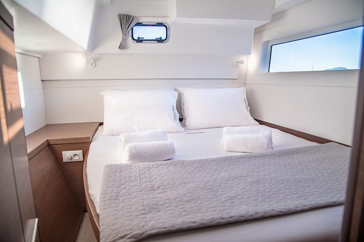 5 -cabin Lagoon 40 catamarano è stato costruito nel 2020 ed è ancorata a Preveza, Grecia. Il catamarano può ospitare fino a 10 persone . Il catamarano offre 5 bagni. La catamarano può essere noleggiata come bareboat . Caratteristiche dell'attrezzatura per barche 2 motore. Vanta anche altoparlante esterno. La cucina completamente attrezzata include frigorifero e macchina da caffè. il gestore della flotta è membro di viravira.com dal 2019 .