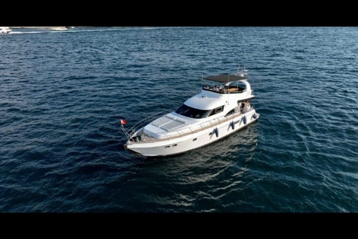 16 M Fatto su misura yacht a motore è stato costruito in 2006 ed è ancorato a Arnavutkoy, Turchia. Il yacht a motore può ospitare fino a 12 persone. Il yacht a motore offre 1 bagni. Questo yacht a motore offre anche docce 1. La yacht a motore è navigata da uno skipper professionista e viene fornita con un equipaggio . Vanta anche altoparlante esterno e altoparlante interno. La cucina completamente attrezzata include attrezzatura da cucina. Questo yacht a motore è gestito dal proprietario dell'annuncio Yunus. Yunus è membro di viravira.com dal 2021 .
