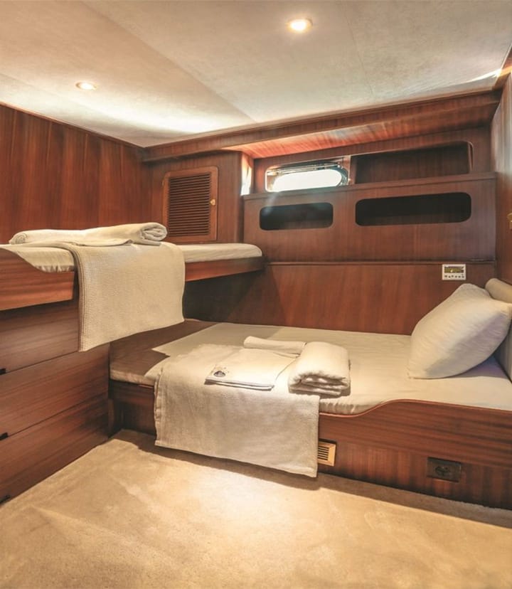 4-cabin Custom Made motor yacht was built in 1990 and it is anchored in Gocek, Turkey. The motor yacht can accommodate up to 8 people with 2 Double Cabin and 2 Twin Cabin. The motor yacht offers 4 bathrooms. This motor yacht also provides 4 showers. The motor yacht is navigated by a professional skipper and comes with a crew. Boat equipment features 2 motor. It also boasts a tv, outside speaker and inside speaker. The fully-equipped galley includes a refrigerator, kitchen equipment, freezer, oven and coffee machine. This motor yacht is operated by the listing owner Aynur. Aynur is a viravira.co member since 2021.