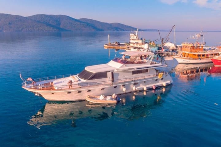Enjoy an unforgettable motoryacht rental experience in the turquoise waters of Göcek! With a length of 25 meters, this custom-built motor yacht is the perfect option for both an accommodation blue cruise and private trips with modern renovated spaces and a professional sense of service. 🌊 Featured Features • 4 Cabins — 8 Persons Accommodation: Ideal for families and small groups with spacious and comfortable living spaces. • 4 WC & 4 Shower: Private bathroom comfort in each cabin. • Professional Crew: Safe and comfortable sailing with experienced captain and crew. • Fully Equipped Indoor: Equipment that provides comfort of living such as TV, kitchen equipment, outdoor speaker. • Fuel: Included in the price. This motor yacht is an ideal choice for those who want to explore the hidden beauties of Gocek bays, take swimming breaks and enjoy a peaceful holiday with a unique view of the Mediterranean Sea. With motoryacht rental from Göcek, sail freely in the turquoise waters, relax in comfortable cabins and enjoy the sea to the fullest. We will be glad to welcome you on our boat! 🌅