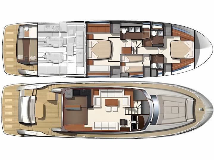 3-cabin Prestige 620 S motor yacht was built in 2016 and it is anchored in Šibenik, Croatia. The motor yacht can accommodate up to 6 people. The motor yacht offers 3 bathrooms. The motor yacht is navigated by a professional skipper and comes with a crew. Boat equipment features 2 motor, bow thruster. It also boasts a tv, outside speaker and inside speaker. The fully-equipped galley includes a refrigerator, kitchen equipment, freezer, oven, stovetop and coffee machine. The fleet operator is a viravira.co member since 2019.