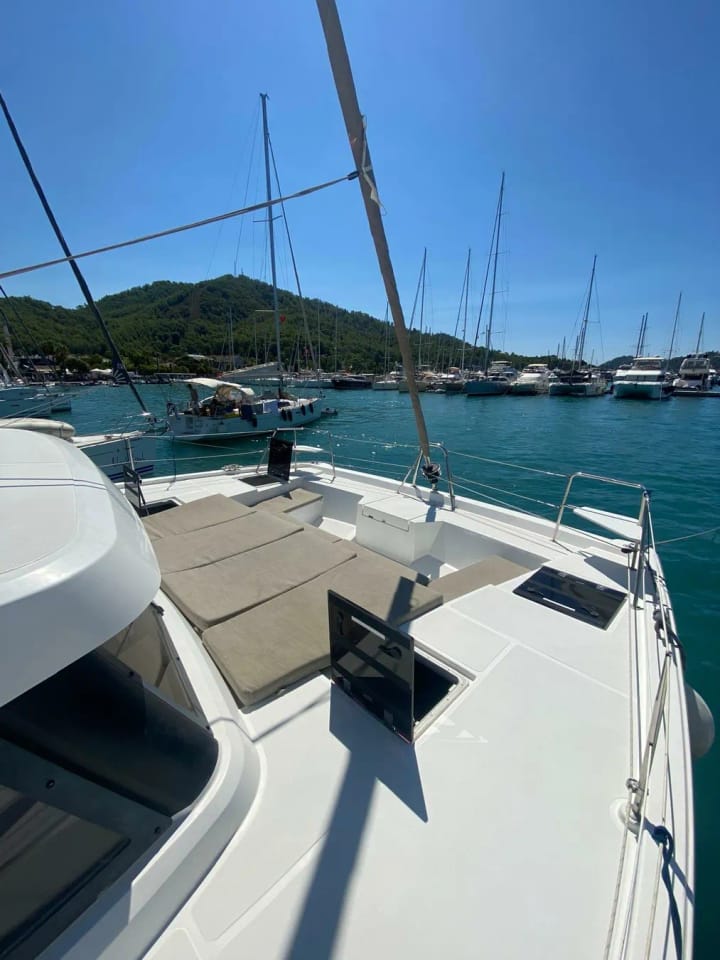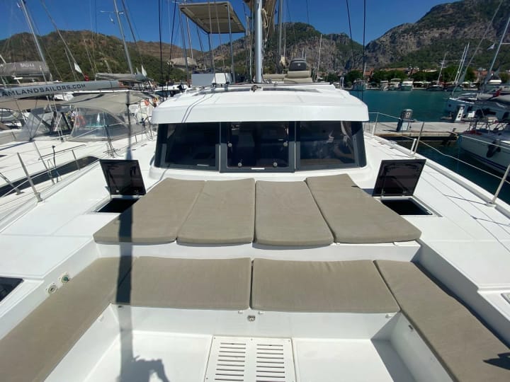 4 -cabine Bali Catspace catamaran werd gebouwd in 2022 en ligt verankerd in Gocek, Turkije. De catamaran is geschikt voor maximaal 8 personen met 4 Cabine voor twee personen . De catamaran biedt 4 badkamers. Deze catamaran biedt ook 4 douches. De catamaran kan worden gehuurd als met schipper of als bareboat . Kenmerken van bootuitrusting 2 diesel buitenboord motor, full batten grootzeil, zelfklevende jib en elektrische ankerlier. Het bevat ook luidspreker voor buiten en luidspreker aan de binnenkant. De volledig uitgeruste kombuis bevat koelkast, keukenapparatuur, oven en kookplaat. Deze catamaran wordt beheerd door de eigenaar van de advertentie, Dilek. Dilek is lid van viravira.co sinds 2021 en eigenaar van een Super Boat .