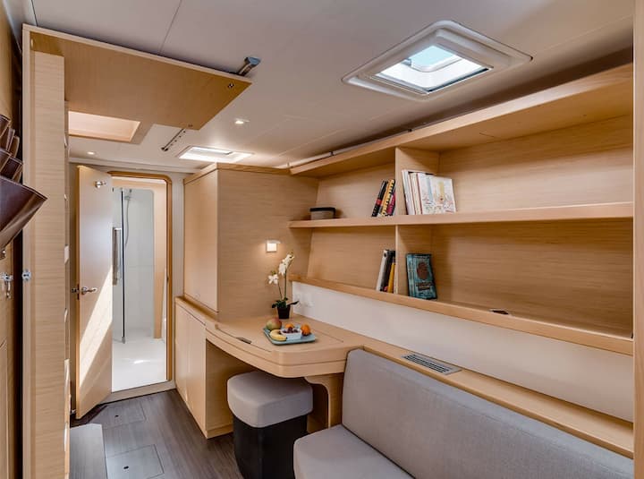 6 -cabine Lagoon 42 catamaran werd gebouwd in 2021 en ligt verankerd in Tourlos, Griekenland. De catamaran is geschikt voor maximaal 10 personen . De catamaran biedt 4 badkamers. De catamaran kan worden gehuurd als bareboat . Kenmerken van bootuitrusting 2 motor, full batten grootzeil, zelfklevende jib en boegschroef. Het bevat ook tv, luidspreker voor buiten en luidspreker aan de binnenkant. De volledig uitgeruste kombuis bevat koelkast, keukenapparatuur, diepvriezer, oven en kookplaat. onze ervaren partner is lid van viravira.co sinds 2019 .