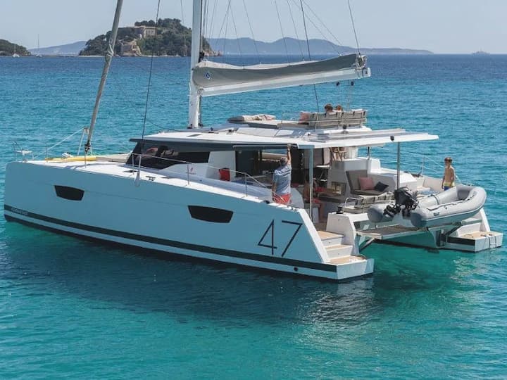5 -cabine Fountaine Pajot Saona 47 catamaran werd gebouwd in 2020 en ligt verankerd in Road Town, Britse Maagdeneilanden. De catamaran is geschikt voor maximaal 10 personen . De catamaran biedt 5 badkamers. De catamaran kan worden gehuurd als bareboat . Kenmerken van bootuitrusting 2 motor, full batten grootzeil en zelfklevende jib. Het bevat ook luidspreker voor buiten. De volledig uitgeruste kombuis bevat koffiemachine. de vlootbeheerder is lid van viravira.co sinds 2023 .