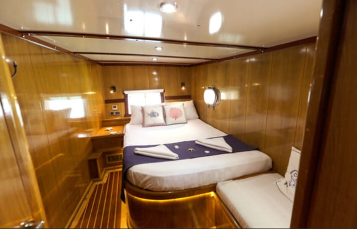 3 -cabine Op maat gemaakt gulet werd gebouwd in 2002 en ligt verankerd in Bodrum, Turkije. De gulet is geschikt voor maximaal 7 personen met 2 Cabine voor twee personen en 1 Cabine voor drie personen . De gulet biedt 3 badkamers. Deze gulet biedt ook 3 douches. De gulet wordt bestuurd door een professionele schipper en wordt geleverd met een bemanning . Kenmerken van bootuitrusting 1 diesel buitenboord motor, full batten grootzeil, zelfklevende jib en elektrische ankerlier. Het bevat ook luidspreker voor buiten en luidspreker aan de binnenkant. De volledig uitgeruste kombuis bevat koelkast, keukenapparatuur, diepvriezer, oven, kookplaat, vaatwasmachine en koffiemachine. Deze gulet wordt beheerd door de eigenaar van de advertentie, Gökhan. Gökhan is lid van viravira.co sinds 2022 en eigenaar van een Super Boat .