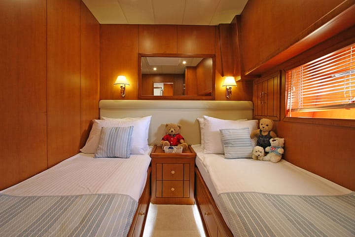 4 -cabine Op maat gemaakt gulet werd gebouwd in 2011 en ligt verankerd in Bodrum, Turkije. De gulet is geschikt voor maximaal 8 personen met 2 Cabine voor twee personen en 2 Cabine met twee eenpersoonsbedden . De gulet biedt 4 badkamers. Deze gulet biedt ook 4 douches. De gulet wordt bestuurd door een professionele schipper en wordt geleverd met een bemanning . Kenmerken van bootuitrusting 2 motor, full batten grootzeil, zelfklevende jib, elektrische ankerlier, boegschroef en elektrische lieren. Het bevat ook tv, luidspreker voor buiten en luidspreker aan de binnenkant. De volledig uitgeruste kombuis bevat koelkast, ijsmachine, keukenapparatuur, diepvriezer, oven, kookplaat en koffiemachine. Deze gulet wordt beheerd door de eigenaar van de advertentie, Ali. Ali is lid van viravira.co sinds 2019 .