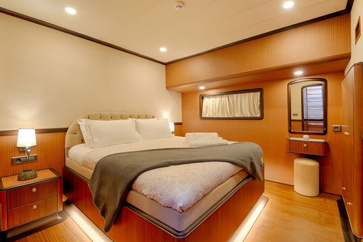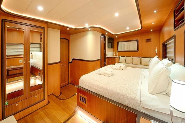 De 40 meter lange, modern ontworpen luxe houten zeilboot is gebouwd in 2019 en biedt een onvergetelijke blauwe cruise-ervaring in de wateren van Turkije en Griekenland. Met zijn tweemaststructuur en volledig uitgerust zeilsysteem combineert hij zowel comfort als echt zeilplezier. Met een totale capaciteit van 18 gasten biedt het jacht accommodatie in 8 hutten, waaronder 2 mastercabines, 4 tweepersoonshutten en 2 driepersoonshutten met 1 tweepersoonsbed + 1 eenpersoonsbed. Alle hutten bieden veel comfort met ruime woonruimtes, eigen badkamers en moderne details. Het jacht, dat opereert vanuit Bodrum, is gecertificeerd voor Turkse Lloyd en biedt zijn gasten service van het hoogste niveau met een ervaren professionele bemanning van 6 personen. De gelamineerde carrosseriestructuur zorgt voor een veilige en plezierige rit met een kruissnelheid van 10 knopen en een maximumsnelheid van 12 knopen. Windsurf-, kano-, wakeboard-, paddleboard-, waterski-, snorkel- en visuitrusting is beschikbaar voor watersportliefhebbers. Er is ook een gemotoriseerde serviceboot van 115 pk en jetski's zijn als optie beschikbaar. Voor degenen die in luxe, comfort en vrijheid willen samenwonen, is deze privézeilboot een ideale keuze voor drukke gezinnen, vriendengroepen en speciale organisaties.