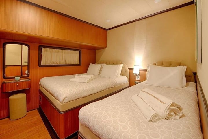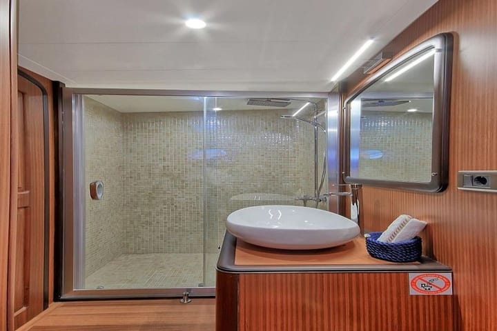 8 -cabine Op maat gemaakt gulet werd gebouwd in 2019 en ligt verankerd in Bodrum, Turkije. De gulet is geschikt voor maximaal 18 personen met 6 Cabine voor twee personen en 2 Cabine voor drie personen . De gulet biedt 8 badkamers. Deze gulet biedt ook 8 douches. De gulet wordt bestuurd door een professionele schipper en wordt geleverd met een bemanning . Kenmerken van bootuitrusting full batten grootzeil, zelfklevende jib en elektrische ankerlier. Het bevat ook tv, luidspreker voor buiten, luidspreker aan de binnenkant, bar en jacuzzi. De volledig uitgeruste kombuis bevat koelkast, ijsmachine, keukenapparatuur, diepvriezer, oven, kookplaat, vaatwasmachine en koffiemachine. Deze gulet wordt beheerd door de eigenaar van de advertentie, Buse. Buse is lid van viravira.co sinds 2020 en eigenaar van een Super Boat .