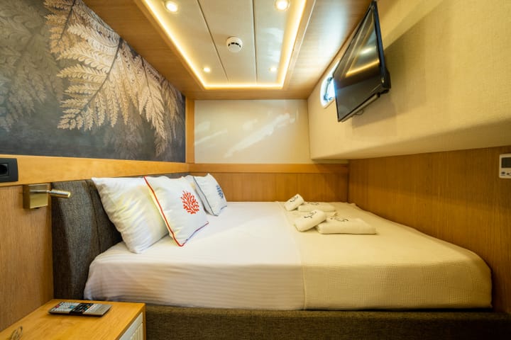 3 -cabine Op maat gemaakt gulet werd gebouwd in 2023 en ligt verankerd in Fethiye, Turkije. De gulet is geschikt voor maximaal 6 personen . De gulet biedt 3 badkamers. De gulet wordt bestuurd door een professionele schipper en wordt geleverd met een bemanning . Kenmerken van bootuitrusting 1 motor. Het bevat ook tv. De volledig uitgeruste kombuis bevat koelkast, ijsmaker, ijsmachine en koffiemachine. Deze gulet wordt beheerd door de eigenaar van de advertentie, Şahin. Şahin is lid van viravira.co sinds 2023 en eigenaar van een Super Boat .
